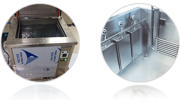 超聲波清洗槽一般采用SUS304不銹鋼手工弧焊而成,適用于普通弱酸堿性清洗液,對于有特殊要求的清洗液可以選擇使用SUS316L或者鈦板等材質.